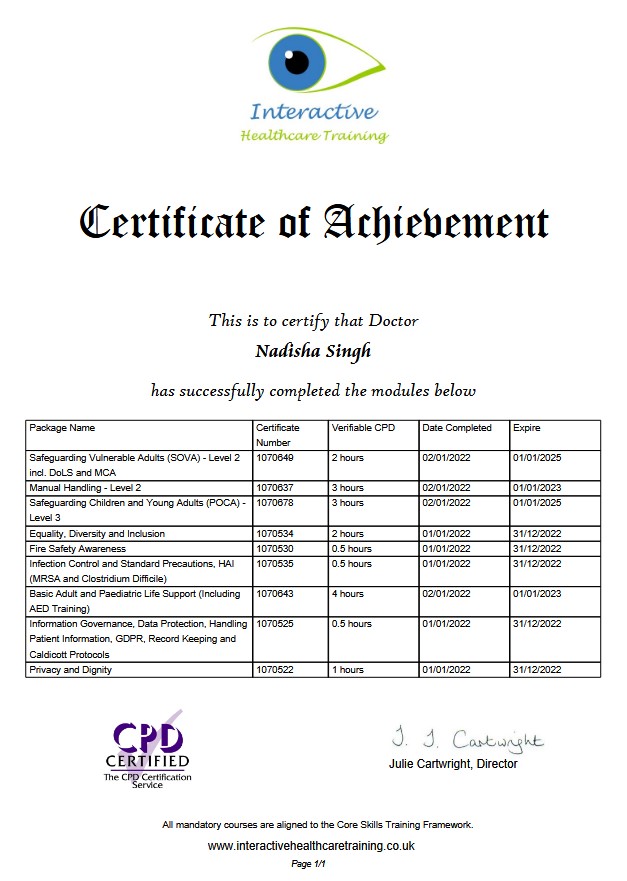 Thank You Dr. Nadisha for all your care and kindness. You were thorough and approachable.